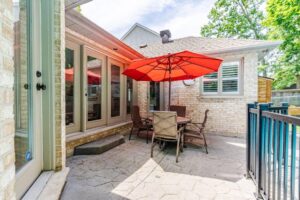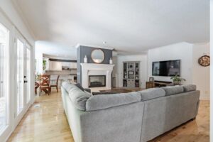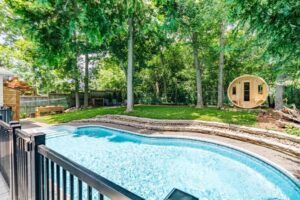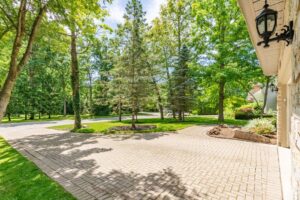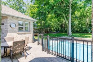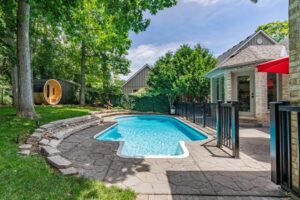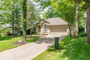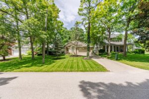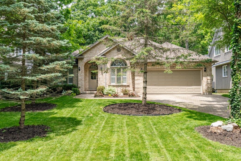 Nestled in the desirable Old Hazelden subdivision in Oakridge, this rare detached one-floor home with backyard pool oasis is located on a tranquil, tree-lined street at the end of a quiet dead-end road. Custom-built by reputable Johnstone Homes, this property offers low-maintenance living and versatile space perfect for empty nesters seeking a condo alternative or young professionals and small families. Surrounded by mature trees, the home is ideally situated next to Thames Valley Golf Course and the Thames River, with easy access to walking trails, Sifton Bog, Hazelden Park, and Springbank Park. Inside, the main floor features gleaming hardwood floors, large windows, and a spacious Great Room with a two-sided gas fireplace. The stunning white kitchen boasts stone counter tops, upgraded stainless appliances, and a gas stove, complimented by a cozy informal dining area with access to the private backyard. A spacious primary bedroom includes a walk-in closet and 4pc ensuite, with private access to the rear patio. Two other good-sized bedrooms and a 4pc main bath complete the main floor. The basement was professionally finished in 2022, offering a rec room with a wet bar, family room, 4th bedroom, 3pc bath with glass shower, laundry room, and great storage. Outside, the backyard is an entertainer’s dream, featuring a gated swimming pool, flagstone patio, fire pit, and sauna with Huum electric & wifi-enabled heater, all surrounded by lush greenery, creating a cottage-like feel. The long driveway, flanked by mature trees, leads to a front with golf course views, ensuring privacy and a feeling of no neighbors across the street. Other upgrades include high-end Fisher & Paykel Fridge & Stove, California Shutters, main floor laundry hookup, and inground sprinkler system. This exceptional property offers quick access to convenient Oakridge amenities such as top ranked schools, golf courses, parks, shopping, including Remark & Superstore, and 10 min drive to downtown London.