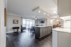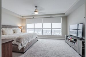 Executive 2 bedroom plus den condo with 2 underground parking spaces located in upscale North London building. This desirable south facing Vienna Model by Tricar offers 1,802 SF of contemporary luxury living plus an additional 153 SF balcony. The interior features an upgraded open concept white kitchen with quartz countertops, stainless appliances & backsplash, large informal dining area with coffee bar and impressive Great Room with gorgeous floor to ceiling stone fireplace. There are 2 spacious bedrooms and 2 full baths including an impressive Primary Retreat complete with walk-in closet and luxurious 5pc ensuite that includes his & hers sinks, oversized glass shower and soaker tub. Convenient in-suite laundry with excellent storage. This unit comes with a large den that makes for a perfect home office, TV room or guest bedroom. Premium hard surface flooring in Great Room & Den and upgraded JennAir designer fridge & stove. Enjoy your morning coffee watching the sun rise on your private balcony or unwind in the evening with an after work cocktail. Lifestyle features include two owned designated underground parking spaces conveniently located close to elevator, owned storage locker, a spectacular indoor salt water pool, fitness centre, theatre room, billiards/bar lounge and golf simulator. Low condo fee that INCLUDES heating, A/C and water. This move-in-ready unit is perfect for young professionals & empty nesters and is close proximity to picturesque nature trails, Loblaws, Chapters, Indigo, Masonville Mall, UWO, University Hospital and Sunningdale Golf Course.