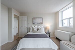 Great downtown location! Close to all amenities. Underground parking as well as huge visitor parking lot. This is a beautiful 6th floor condo recently painted, 5 appliances, and some newer light fixtures. Approximately 1,100 sq ft. Clean, bright with amazing views from large windows. Ideal for professionals, students, or those looking to downsize. Assigned underground parking and storage locker. Amenities include salt water pool, hot tub, exercise room, meeting room & guest parking. Don’t miss this opportunity to live in a great downtown condo!
